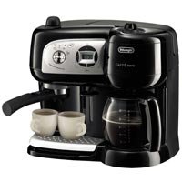 Description : This three-in-one machine brews drip coffee, foams and steams milk, and brews espresso. The Delonghi Caffe Nero offers everything you’ve come to expect out of an espresso machine, as well as a drip coffee maker, so you’re sure to please all the caffeine addicts in the house. Use the steam wand to foam and steam milk, or you can also dispense hot water from it. Since the coffee maker and espresso maker use separate water reservoirs and heating elements, you can brew coffee and make espresso simultaneously. The drip coffee maker is even programmable, so you can wake up in the morning to a full pot of fresh coffee. For anyone who loves coffee – whether it’s brewed in small batches under high pressure (for espresso), or brewed in larger quantities with hot water (for drip coffee) – the Delonghi Caffe Nero combination machine is sure to please both your palate and your wallet.