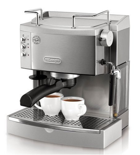 Description : Enjoy delicious espresso made your way with De'Longhi's pump espresso and cappuccino maker. You can choose to brew ground espresso or E.S.E pods with the unique patented dual filter holder. The Sempre Crema Filter, used with two measures of ground coffee, enhances the brewing process to produce a perfect crema. The E.S.E. (Easy Serving Espresso) Filter, used with pods or one measure of ground coffee, makes espresso preparation simple and convenient. Either way the choice is yours, making your espresso truly made to order. You can enjoy espresso or cappuccino without worry with two separate thermostats that control water and steam pressure, so you can make both espresso or cappuccino at the perfect temperature. If you prefer cappuccino you'll enjoy using the easy-to-use patented cappuccino frother, which includes a special chamber that mixes steam and milk to create a rich creamy froth achieving perfect drinks every time. Other highlights include self-priming operation to eliminate pesky start-up preparation, a unique no-drip design, so you don't have to deal with messy cleanup and a durable, high-quality stainless steel boiler to ensure many years of delicious espresso.