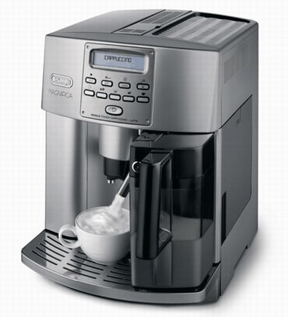 Description : The redesigned Delonghi Magnifica 3500 improves upon the original model with the addition of a stainless steel-lined brew boiler for increased durability. Paired with a separate boiler for steaming and frothing, there is no longer any wait time between brewing and steaming. The redesigned model also features an improved low-pitch conical burr grinder, and takes versatility to a higher level with a digital display and built-in automatic frother. With fully programmable brewing settings and one-touch cappuccinos and lattes, the Magnifica 3500 lets you customize your espresso drinks to accommodate a variety of tastes. The 3500 features a smoked silver exterior and stainless steel accents, so not only does it brew for perfection, it also looks great in the kitchen.