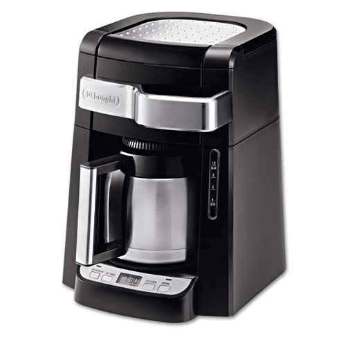 - Double-wall thermal carafe features unique vacuum-sealed design that retains heat, to keep coffee hot for hours.