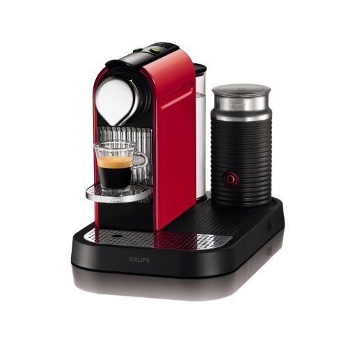 - Nespresso CitiZ D120 Espresso Maker w/ Aeroccino Milk Frother in Red